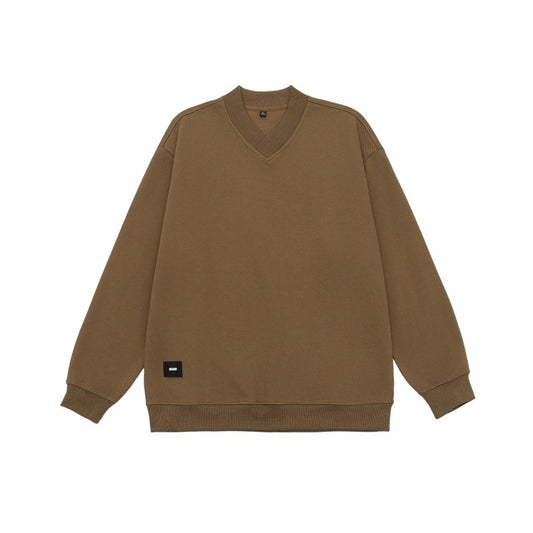 V-neck Pullover Basic Shirt Loose Embroidered Logo Sleeve Sweatshirt