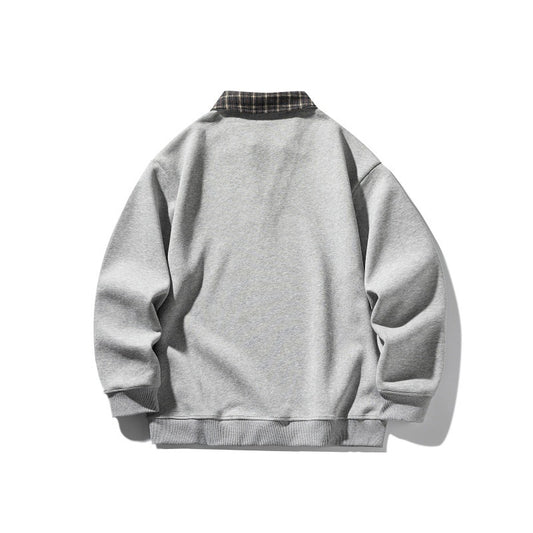 Fake Two-Piece Plaid Spliced Polo Neck Loose Long Sleeve Hoodie