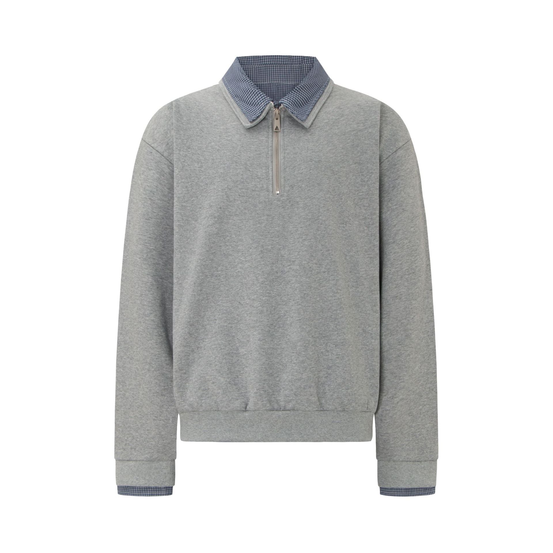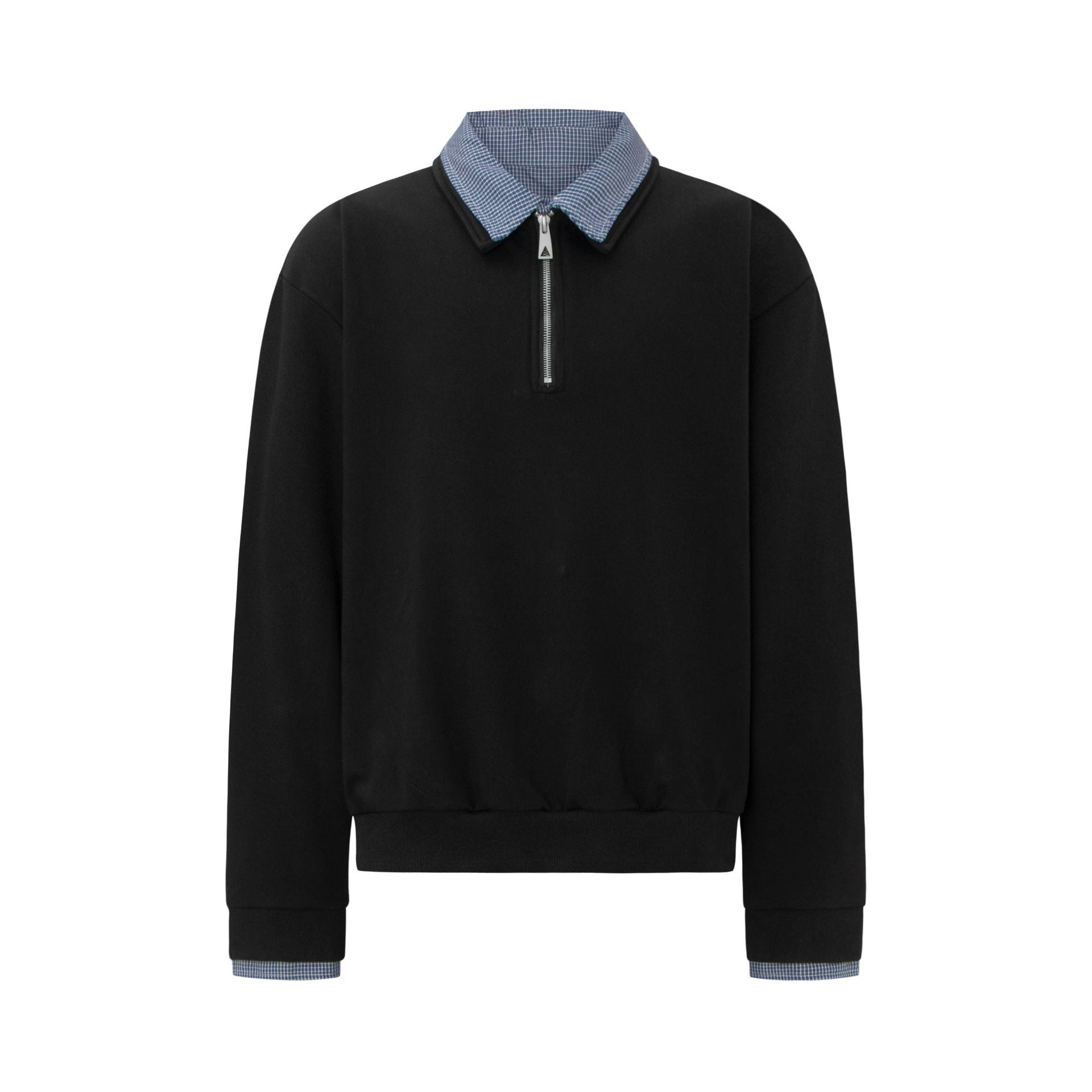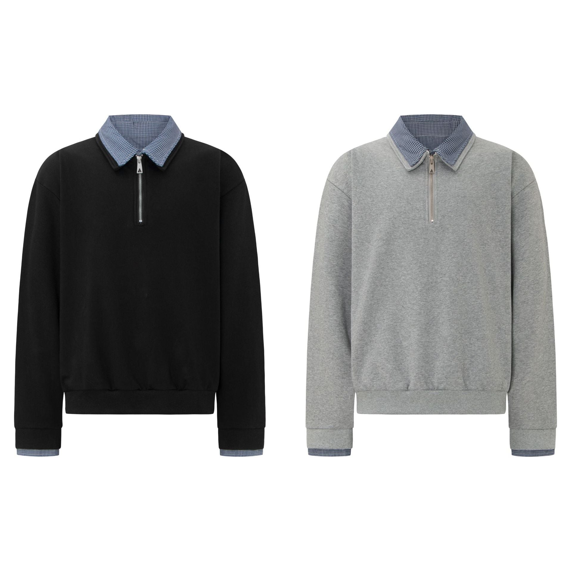 Vintage Double-Layer Collar Unisex Mock Two-Piece Plaid Heavyweight Design Premium Men's Turn-Down Collar Long Sleeve T-Shirt